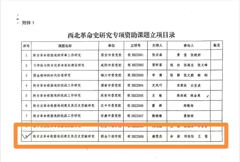 10月,陕西照金干部学院青年教师郝雯杰申报的课题《陕甘边革命根据地创建及其历史贡献研究》,获批西北革命史研究专项课题立项。